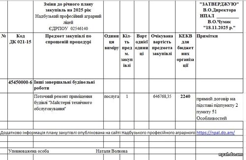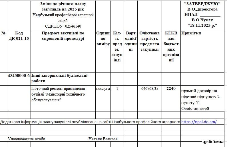 Зміни до річного плану закупівль на 2025 рік (продовження 7)