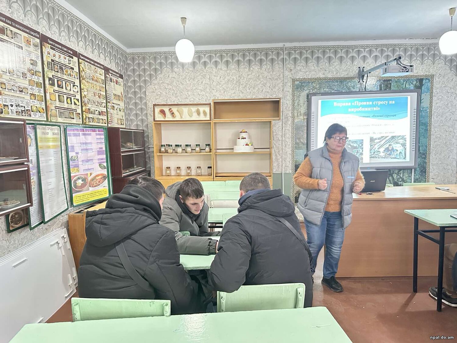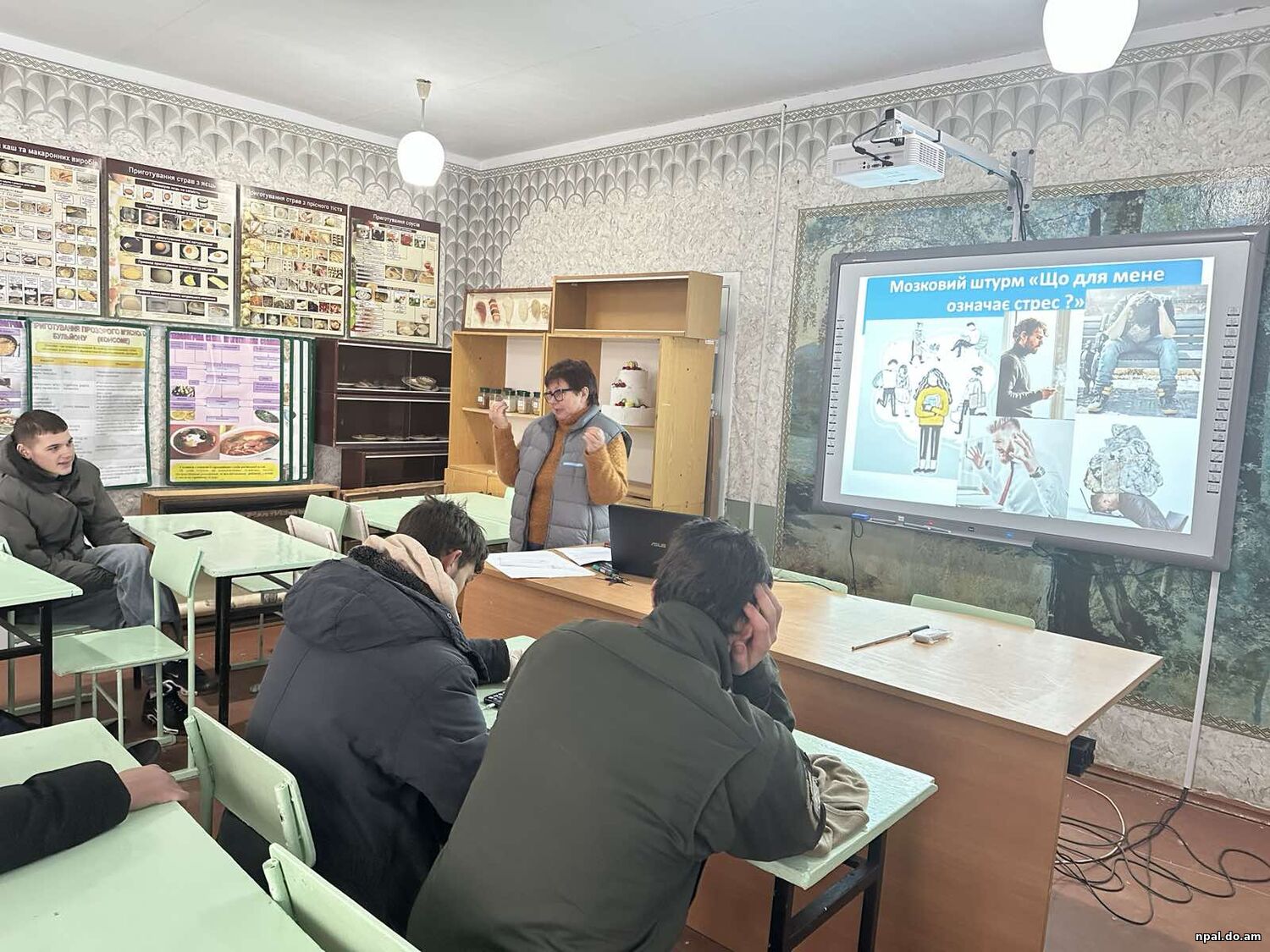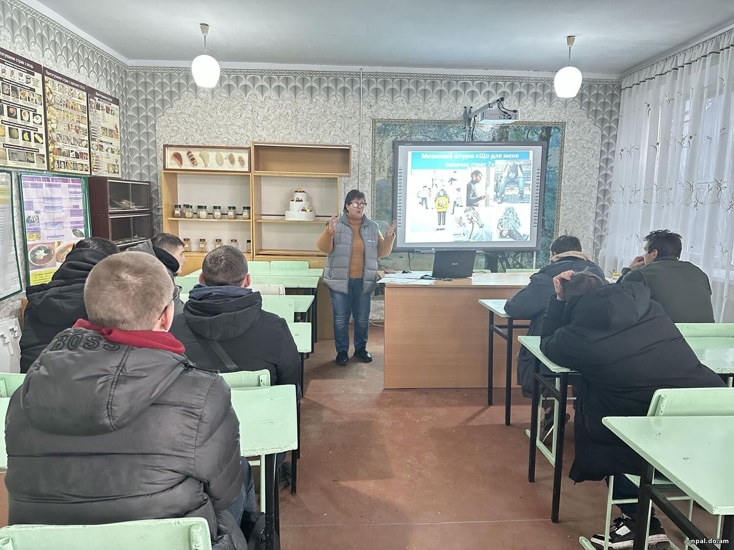 Учасники тренінгу ознайомилися з основними причинами виникнення стресу у виробничому середовищі, його впливом на працездатність, безпеку праці та якість виконання професійних обов’язків. Майбутні слюсарі досить активно долучилися до обговорення стресових ситуацій, які можуть никнути на роботі, ділилися ідеями щодо зменшення емоційного напруження та наводили власні приклади.
