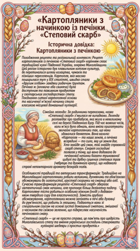 Адамчук Н.І. – картопляники з начинкою із печінки «Степовий скарб»;